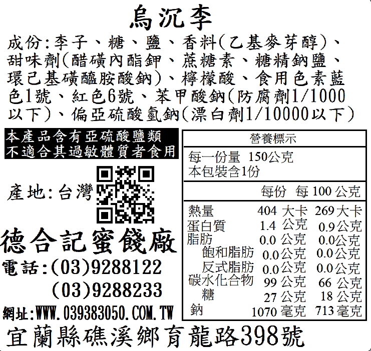 製造廠商:德合記食品廠