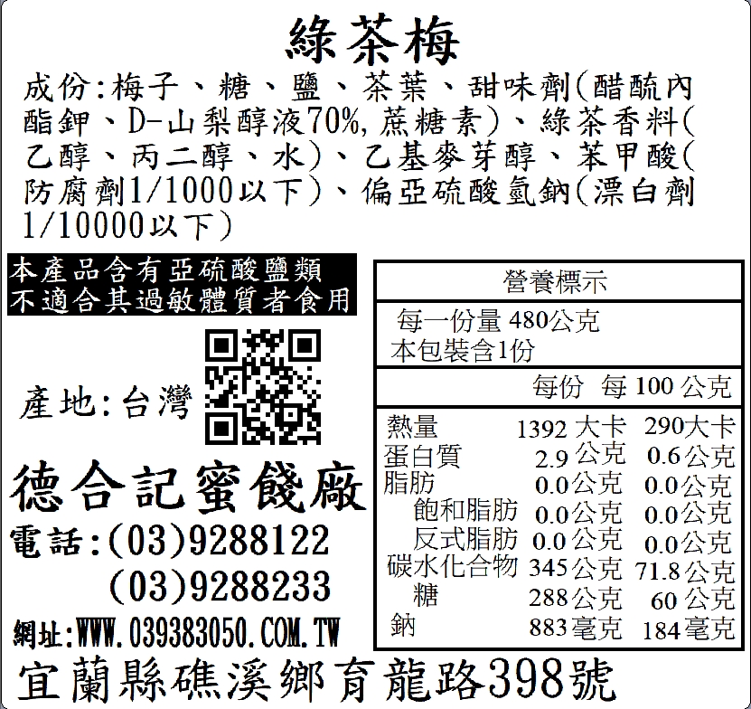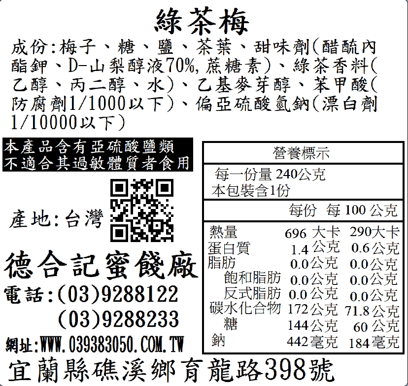 綠茶梅,使用Q梅和高山綠茶一起熬煮,茶香配上Q梅的口感可稱一絕,最老少咸宜的口味。
